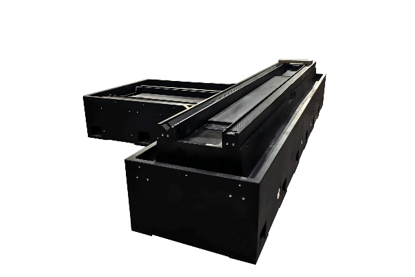 1. Product material: Mineral casting base with Hydrostatic guideway 2.Product size: 2600 * 1500 * 700 mm 3. Product advantages: The bearing surface of the hydrostatic guideway is directly integrated by the mineral casting bed, and the hydrostatic module is directly combined with the mineral casting bed to replace the traditional wire gauge, and the straightness can be controlled at 0.5 μ/m, which further improves the accuracy and stability of the product.